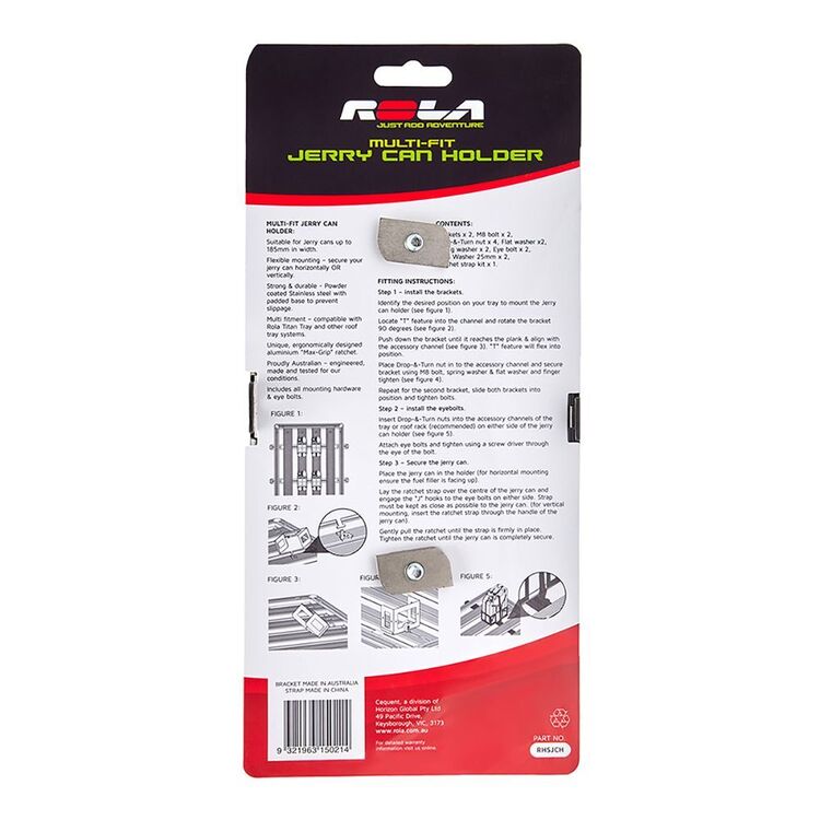 The Rola Jerry Can Holder’s versatile design will easily carry your Jerry Can, vertically or horizontally.