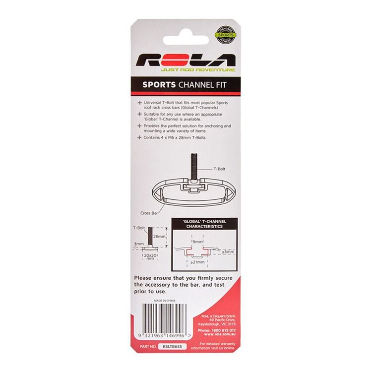 Universal anchor fitment suitable for most common roof racks and other applications. Pack of 4, M6 Stainless Steel T-Bolts that allow you to custom fit your accessories to the universal channel.