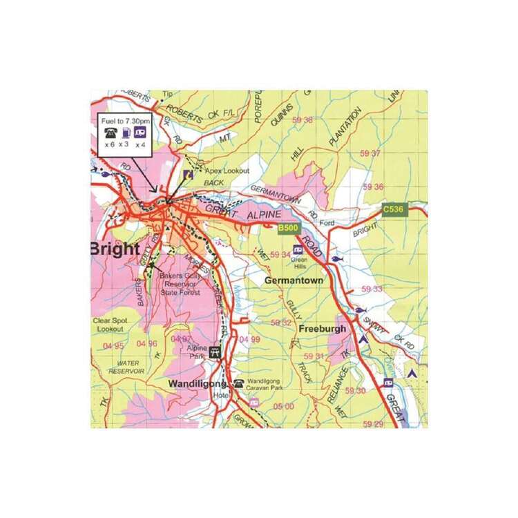 All parks, reserves and state forests are shown and all roads and tracks have been plotted using GPS mapping technology.