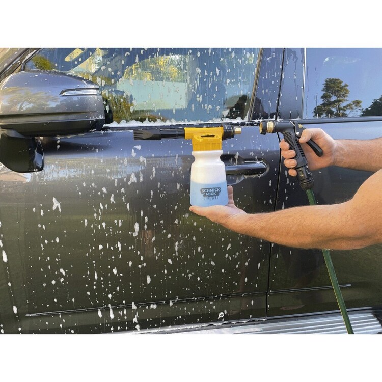 Guarantee the perfect lather for your car with the Schmick Mick Foaming Gun! This gun simply attaches to your garden hose to ensure the foam wash is spread evenly and thickly across the vehicle you’re cleaning. Simply fill the compartment with a few cap fulls of the Schmick Mick Ceramic Wash and spray away. Stock up on your favourite cleaning products or invest in the spray guns with Anaconda’s wide range of Schmick Mick products – available online or in-store now.