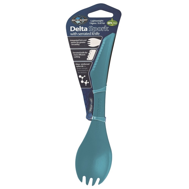 From the great Sea To Summit range, comes the Sea To Summit Delta Spork, one of many great options available instore and online. The Delta Spoon has been designed with ease of use and practicality in mind. The integrated knife spreader has a strong cutting edge thanks to our bomb proof Nylon 66, while the spoon profile has been shaped to be comfortable in the mouth and also as the perfect companion to the high sided Delta Bowl and Delta Plate. The addition of the spork makes them the most versatile eating utensils on the market!
