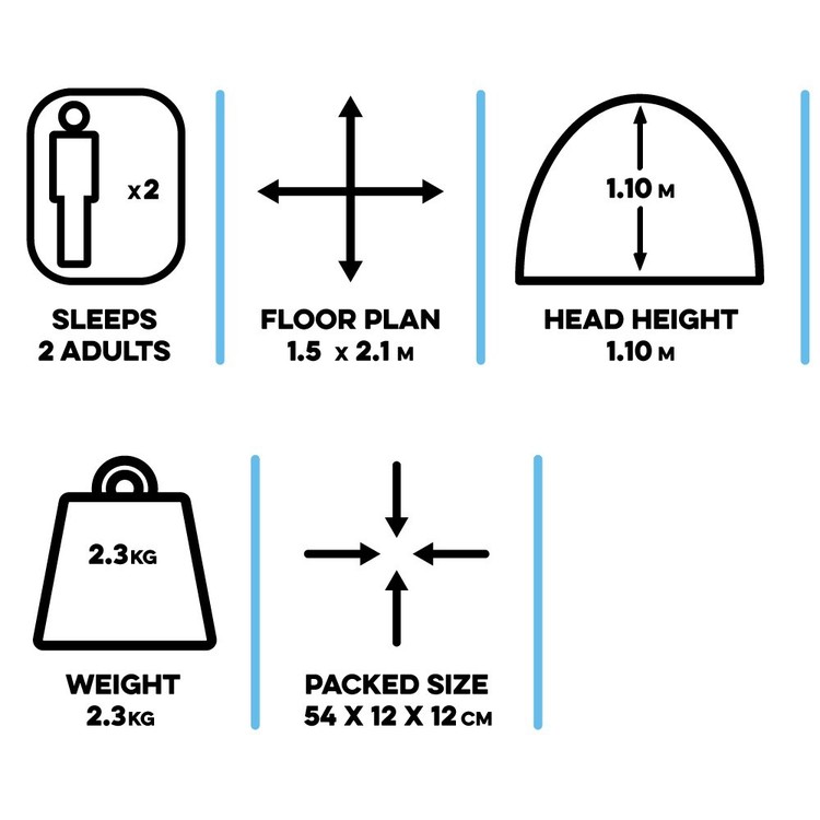 The Spinifex Premium Conway 2 Person Tent is a great choice for your next camping or hiking adventure. Featuring a bucket style floor that will stop anything from crawling in, 2 large doors for easy access and greater ventilation, and high tech matrix wrap fibreglass poles for greater strength and flexibility, this tent is a fantastic choice this season.