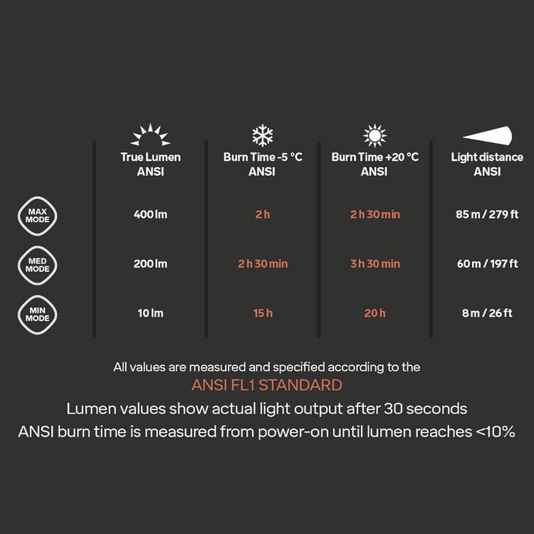 Super-low mode (10 lumen) – saves battery and perfect for reading
