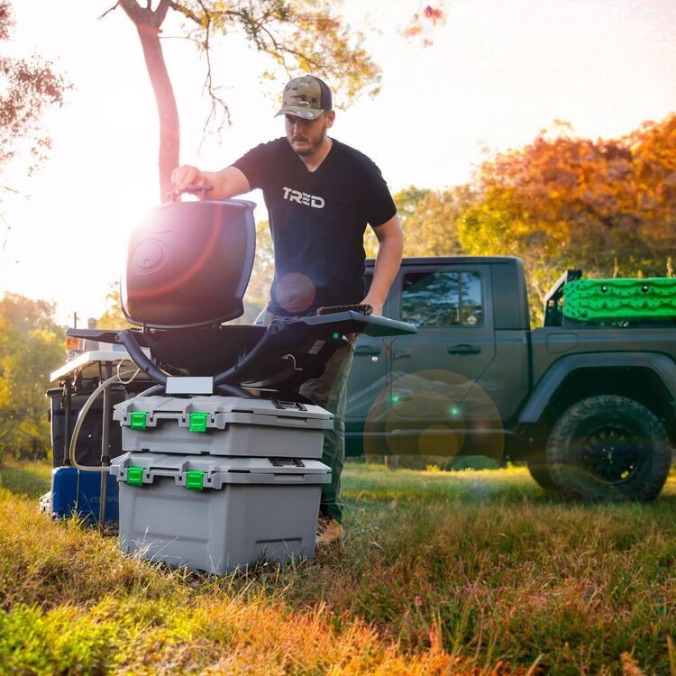With the multi-direction opening lid, BBQ feet recesses, weather-resistant seal, bottle opener storage, integrated screw bosses, tie-down points, and TRED Link connectivity, the TRED GT Storage Box is perfect for 4WDing, touring, boating, fishing, camping, farming, general gear storage at home and hunting.
