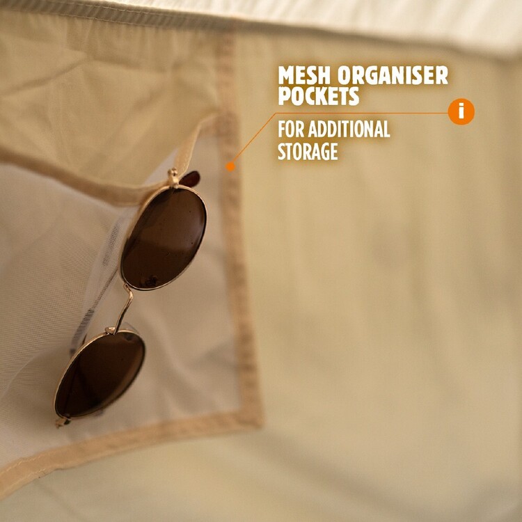 This glamping tent is your new ultimate camping companion, featuring materials such as PVC flooring and steel poles ensure that quality and sturdiness you need from a tent, no matter the trip type. The high performance breathable fabric, vented canopy and mesh windows also allow ventilation and breathability. Decked out with a lantern hook and organiser pockets you’ll have everything you need within arms reach to relax and enjoy the trip. Add some fairy lights, a sleeping bag and enjoy the serenity, easily create a special glamping experience today with the Yonder Outdoor Argyle Bell Tent.